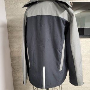 North End Apparel Interactive Colour Block SHell with reflective print patterns, Large, Black/Graphite/Red