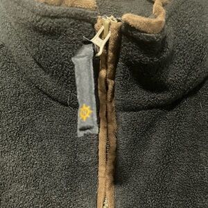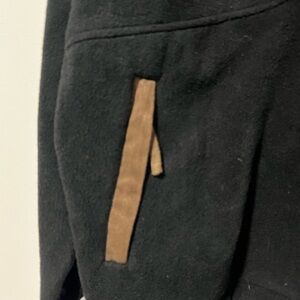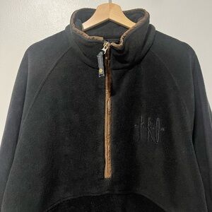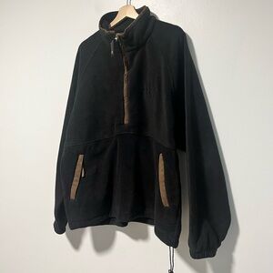 Description: Stay cozy and stylish in this North End Pro Club black fleece pullover, designed for all climates. This rugged piece features a quarter-zip closure with contrasting suede-like accents on the zipper and pockets, plus a drawstring hem for an adjustable fit. Made to handle outdoor adventures and casual days alike, this pullover is both functional and fashionable. Condition: Good pre-owned condition, with minor wear consistent with gentle use; no major flaws.