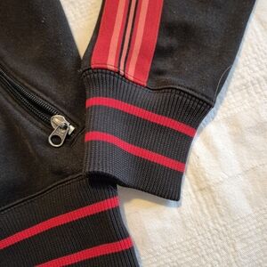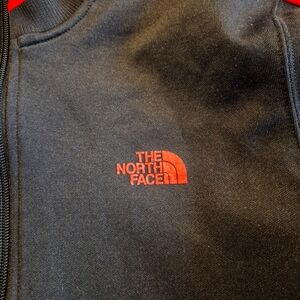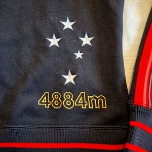 The North Face A5 Summit Series women's Medium track jacket. Featuring the iconography of Mt. Carstensz. Black red & orange, full zipper 2 front zippered pockets, Back embroidery 4884m with white stars VGUC