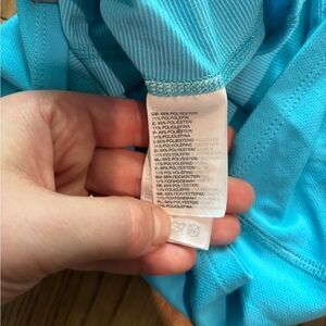Electric blue women's top by The North Face. Ideal for a walk outside or whatever activity. Minor flaws (on the sleeves) shown on 5th and 6th pictures. Light fabric. Size small for women.