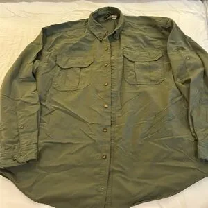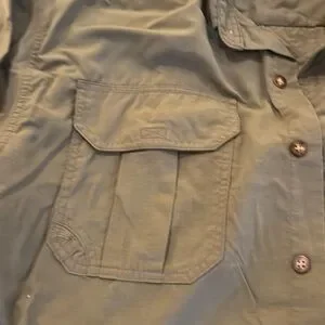 Men’s adventure shirt. Worn minimally as too big for wearer. Buttons so sleeves stay rolled up. Good for hiking, camping or fishing.