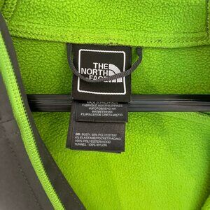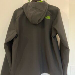 North Face Lime Green And Grey Comfort Shell Hooded Jacket - Large