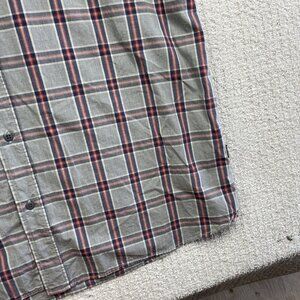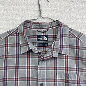 North Face Shirt Men XXL Short Sleeve Button Up Light Gray / Blue Plaid Outdoor