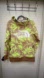 North Face Women's Tekno Snow Pullover Hoodie Brown Prairie size small. A relaxed-fit pullover with a hood and a large, secure-zip kangaroo pocket. It is suitable for skiing and snowboarding and can be worn as a layer on the slopes. The pattern is a mix of brown, tan, and neon green leaf with a paintbrush print.