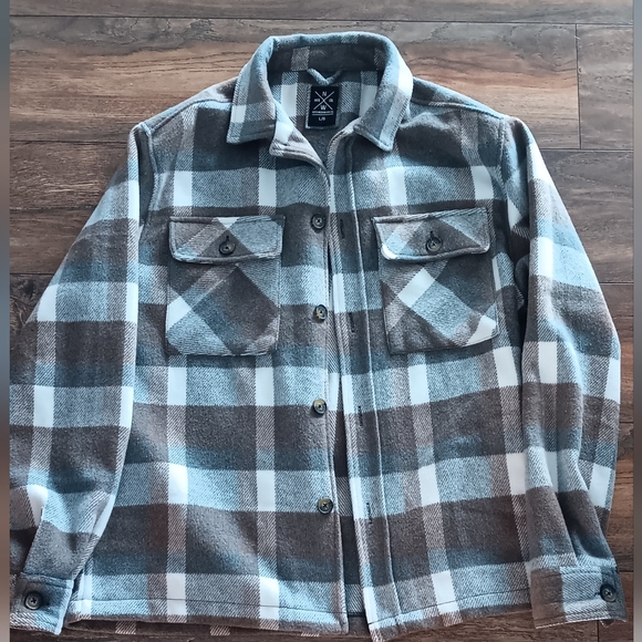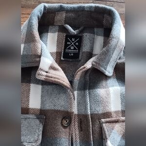 Classic plaid button-up shacket in blue and brown. Soft, brushed fabric for warm, comfortable layering. Chest flap pockets add functional style. Clean, versatile design for everyday wear🔥