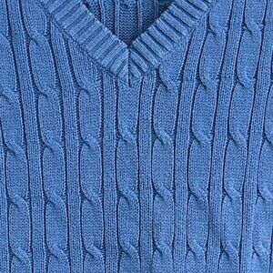 NorthCrest Women’s Powder Blue Cable Knit Cotton V-Neck Sweater Sz M Cabincore