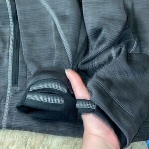 Inside storm placket with chin guard, contrast centre front reverse coil zipper with semi-autolock, rubber pull tab, stretch storm cuffs with thumb holes ,chest pocket with contrast invisible zipper, lower pockets with contrast reverse coil zippers and zipper garages contrast coverstitch details, audio port access through inside left pocket, adjustable shockcord at hem