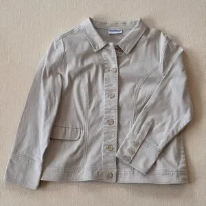 This NorthStyle jean jacket in cream features a textured quilted design that provides warmth and comfort. With a button up front and full-length sleeves, it offers a relaxed fit perfect for mild to cool weather. Its versatile light color makes it easy to pair with various outfits.🤍🤍