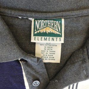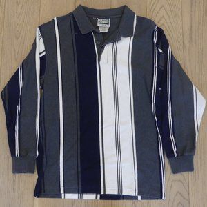 Northern Elements Grey/Navy Blue/White Vertical Striped Small Long Sleeve Polo