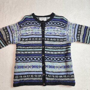 Northern Isles Hand Knit Wool Button Cardigan Sweater Jacket Womens Large