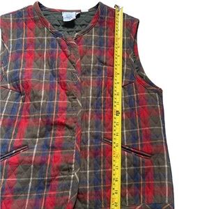 Vintage vest, plaid vest, red checkered vest, Northern Isles, classic style, metal buttons, mouse detail, made in USA, retro fashion, cozy layering piece, fall outfit, winter vest, regular fit, button up vest, timeless design