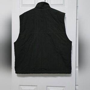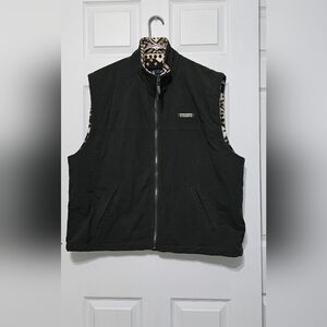 Stay warm and stylish with this reversible vest from Northern Reflections. Featuring a dark green side and a woodsy design fleece side. Each side has pockets.