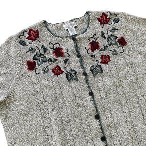 Northern Reflections Autumn Leaves Cardigan Sweater Cable Knit Vintage Y2K