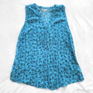 Northern Reflections Blue Floral Button-Up Sleeveless Blouse [XL]