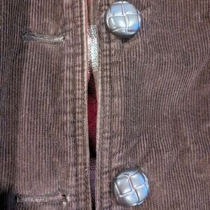 Stylish brown corduroy jacket. Perfect for casual wear. Features button closure and deep pockets.