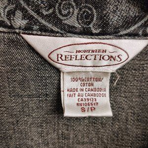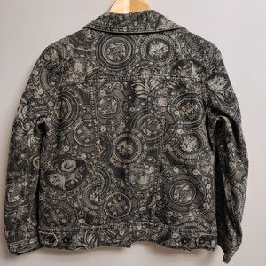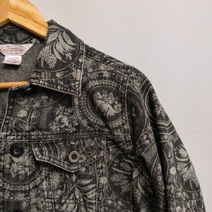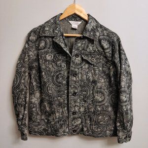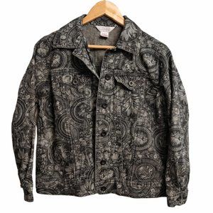 Northern Reflections Dark Grey Paisley Print Denim Jacket Stretch Size Small