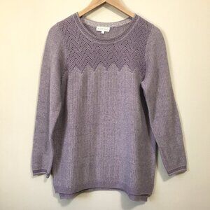 Very good preowned condition, lilac-coloured knit sweater top by Northern Reflections. A very pretty piece with a princess-y colour palette.