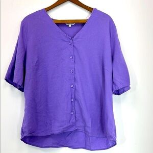 Northern Reflections Linen Blend Button Up Top Women's Large Travel Resort Lilac