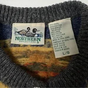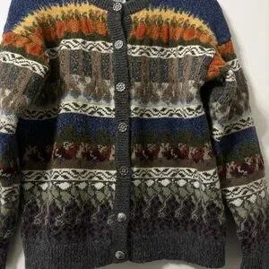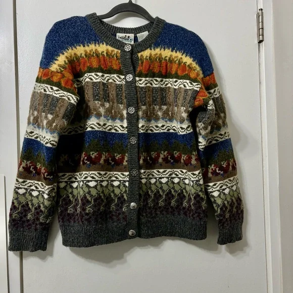Northern Reflections Multi-Color Patterned Wool Blend Cardigan