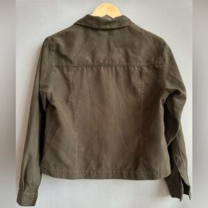 Faux Suede Jacket | Olive Utility Jacket | Lightweight Fall Jacket | Relaxed Fit Outerwear | Minimalist Jacket | Earth Tone Jacket | Layering Piece | Soft Touch Jacket | Dark Olive Jacket | Cropped Utility Jacket | Northern Reflections Jacket | Weekend Casual Style | Elevated Basics