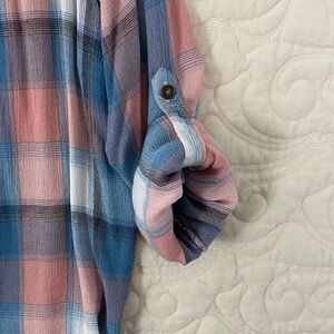 Northern Reflections Plaid Shirt in Blue and Pink with Roll Tab Sleeves