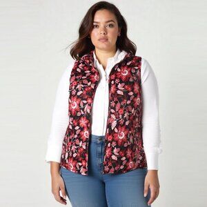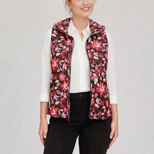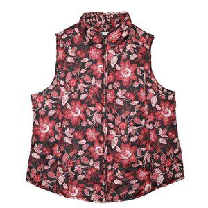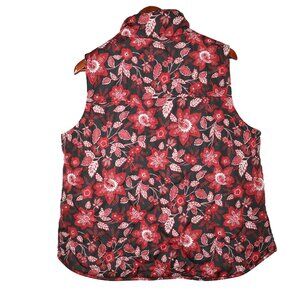 Northern Reflections Quilted Vest Lightweight Floral Red Black Full Zip Casual