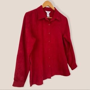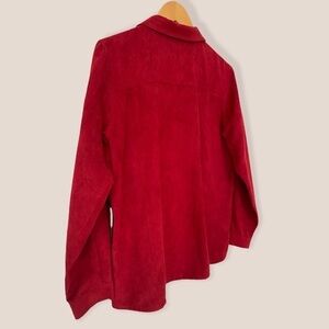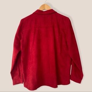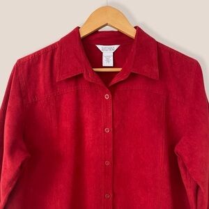 Suede-like long sleeve button down shirt. Beautiful red colour. Like new condition. Size L.