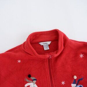 Northern Reflections Red Embroidered Skaters Winter Fleece Zip Up Sweater Xl