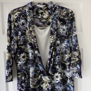 Northern Reflections Womens Blue Florial 3/4" Sleeve Blouse Camisole Size Medium