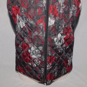 Northern Reflections Womens M Red Black Gray Roses Quilted Full Zip Vest