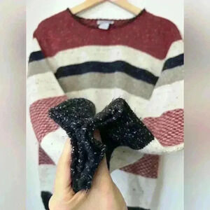 Northern Reflections Womens Red Striped Knit Cotton Cottagecore Sweater Large