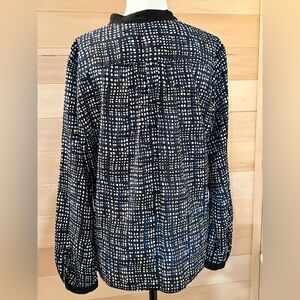 navy blue and white hidden button up blouse