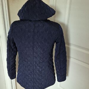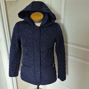 Elegant quilted design with a comfortable hood. Perfect for chilly days.
