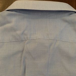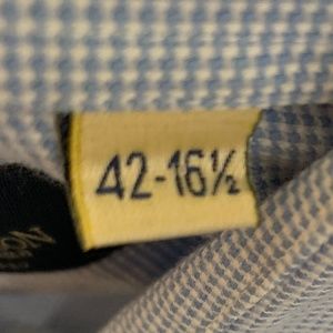 Beautiful shirt from high quality brand Norton & Wilson. Made in Italy. Bought in Florence. Dress shirt with cuffs that need cuff links. 100% cotton mini check blue/white combo. Size is 42 - 16 1/2. For your easy reference, please note the following key measurements: