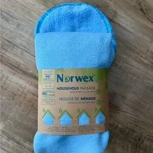 Efficient cleaning with Norwex microfiber cloths. Ideal for various surfaces.