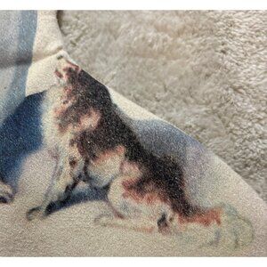 This festive Christmas stocking features a vintage Santa Claus print with children and a dog. The soft cotton and polyester blend provides a cozy touch, making it a charming addition to holiday decor. A bright red quilted cuff adds texture and elegance to the design.