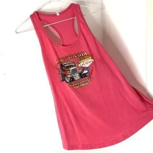 Ideal T by Next Level Nostalgia Street Rods Pink Racerback Tank Top Size L. Graphic front with curved hem. 60% cotton 40% polyester. Note light signs of wear- see photos. Measurements flat: