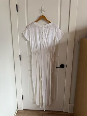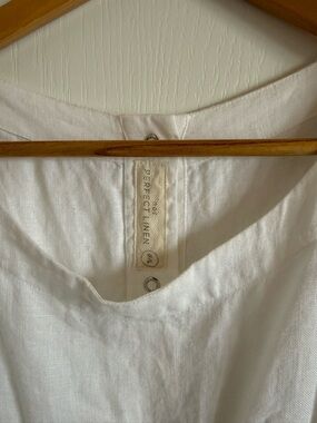 Not Perfect Linen white romper, I apologize but I don’t know the style name. It’s a size M/L and so beautiful, just slightly too big for me.