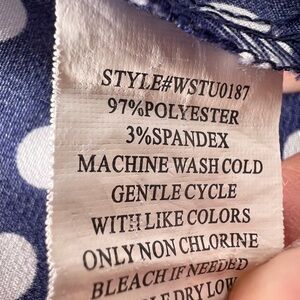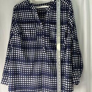 Chic blouse with classic polka dots. Features a buttoned front and dual chest pockets. Ideal for versatile styling.