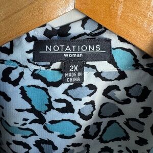 Notations Women's Multicolor Leopard Print 1/2 Sleeve Button Up Satin Blouse 2X
