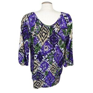 Notations Womens Plus Size 2X Blouse Peasant Key Hole Animal Floral Multicolor