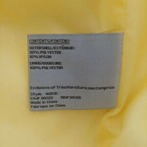 Novelti by AJG Wind/Water Resistant Coat Jacket Yellow Tie Up XL