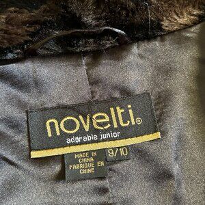 Novelti faux fur coat in rich, dark chocolate brown with animal print trim on collar and cuffs - very good used condition. Fully lined, two front pockets at hip area, includes original spare button. Very soft - Vintage feel