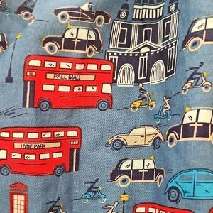 This knee-length skater skirt features a playful British cityscape print in blue and red, perfect for casual or work settings. The pleated design adds a touch of elegance, while the vibrant colors make it a standout piece in any wardrobe.
