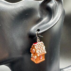 Novelty Christmas Pierced Earrings Gingerbread Houses Hook