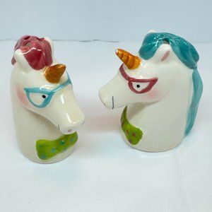 Novelty White Unicorns Ceramic Salt and Pepper Shakers with Glasses