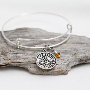 November Scorpio Adjustable Charm Bangle - Handmade Zodiac Bracelet