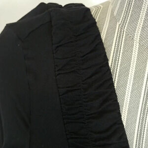 Versatile lightweight black cardigan. Soft and comfortable fabric. Decorative border. Ruched 3/4 length sleeves.