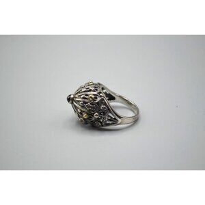 Dome style filigree ring by Noy Li. Stamped "585 Israel 925". It weighs 11.71g and is a size 9. In excellent condition. Please review photos closely.
