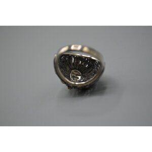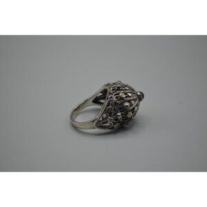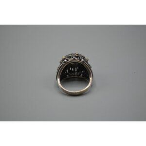 Noy Li Filigree Dome Baroque Style Cocktail Ring Size 9 Israel 925 Red Accent